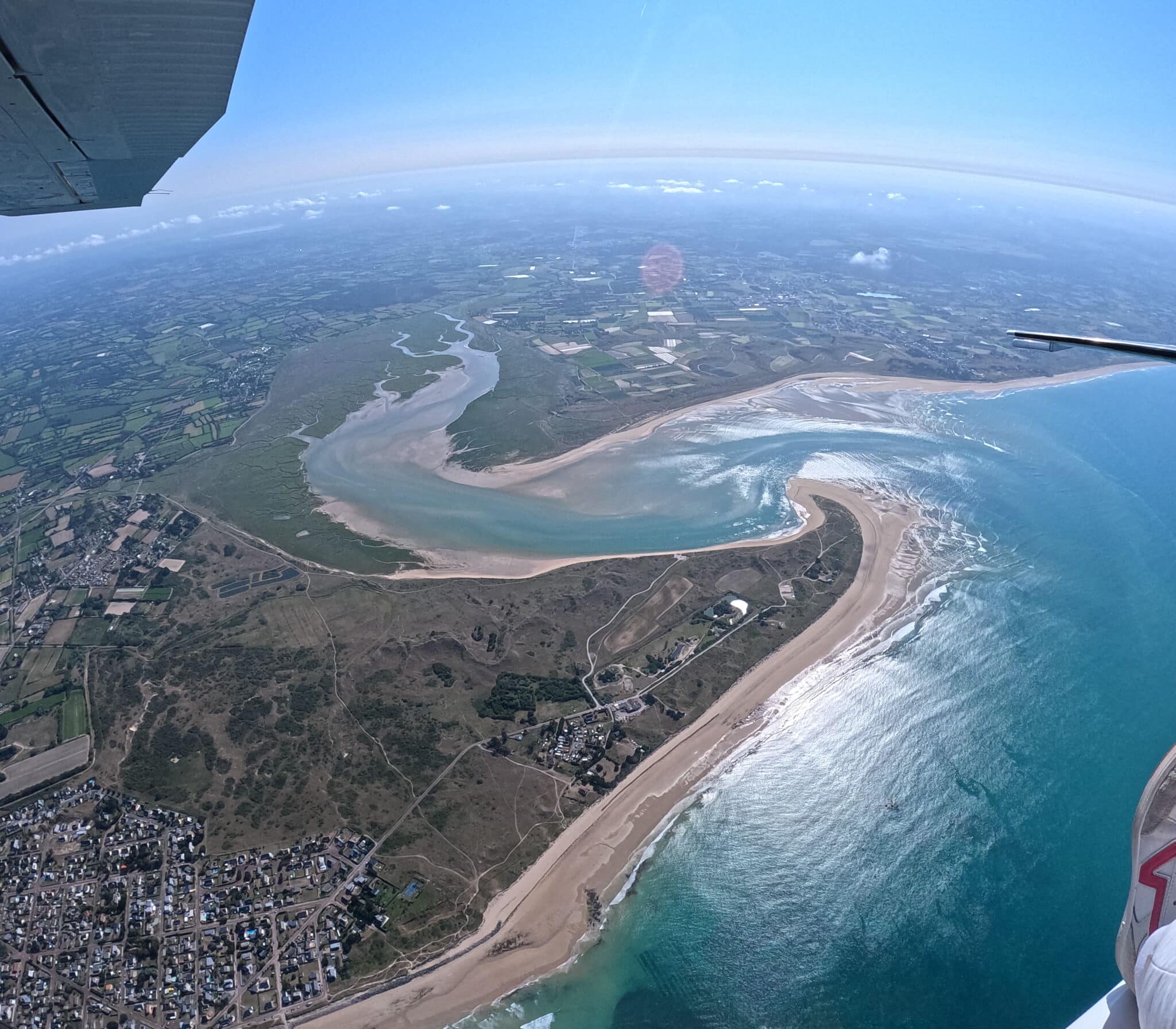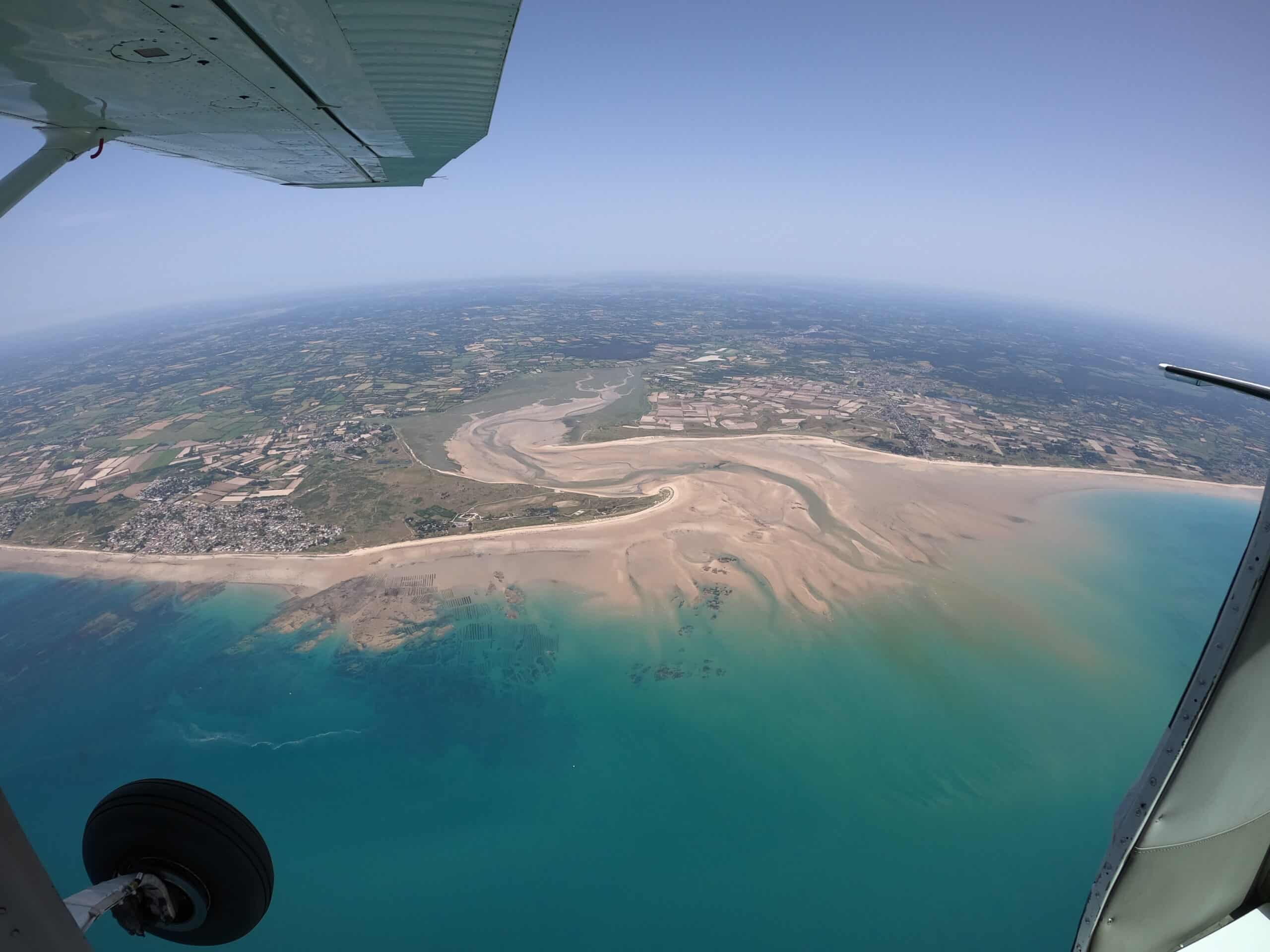 À chaque vol, le panorama dévoile la baie du Mont-Saint-Michel, les plages du Débarquement et les côtes du Cotentin jusqu’à l’île de Jersey.